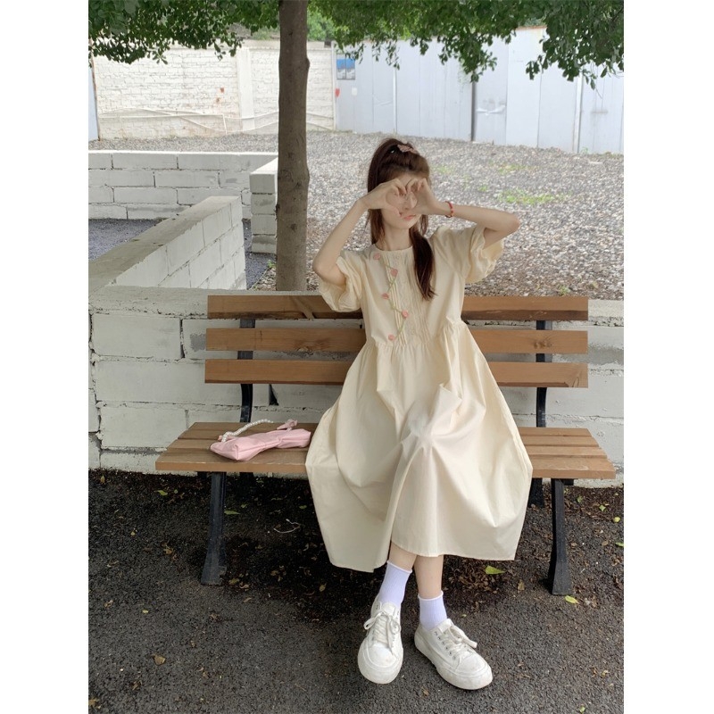 法式甜美减龄泡泡袖绣花连衣裙小众设计温柔风初恋小个子长裙子夏