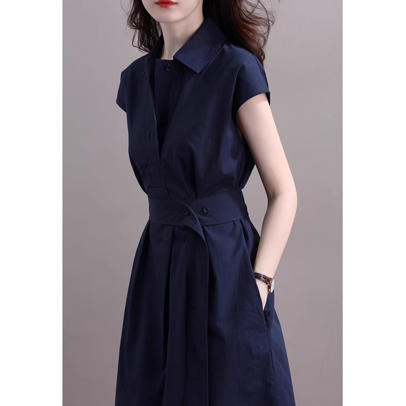 法式Polo领衬衫连衣裙女夏2024新款高级感收腰气质女神范衬衣裙