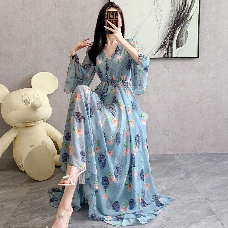 女装夏季雪纺洋气度假沙滩高级感长款连衣裙韩版长裙跨境爆品