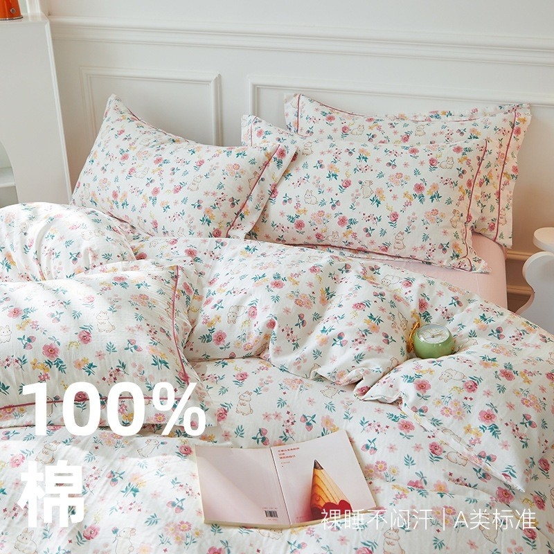 A类母婴级全棉双层纱四件套ins风纯棉床单床笠被套