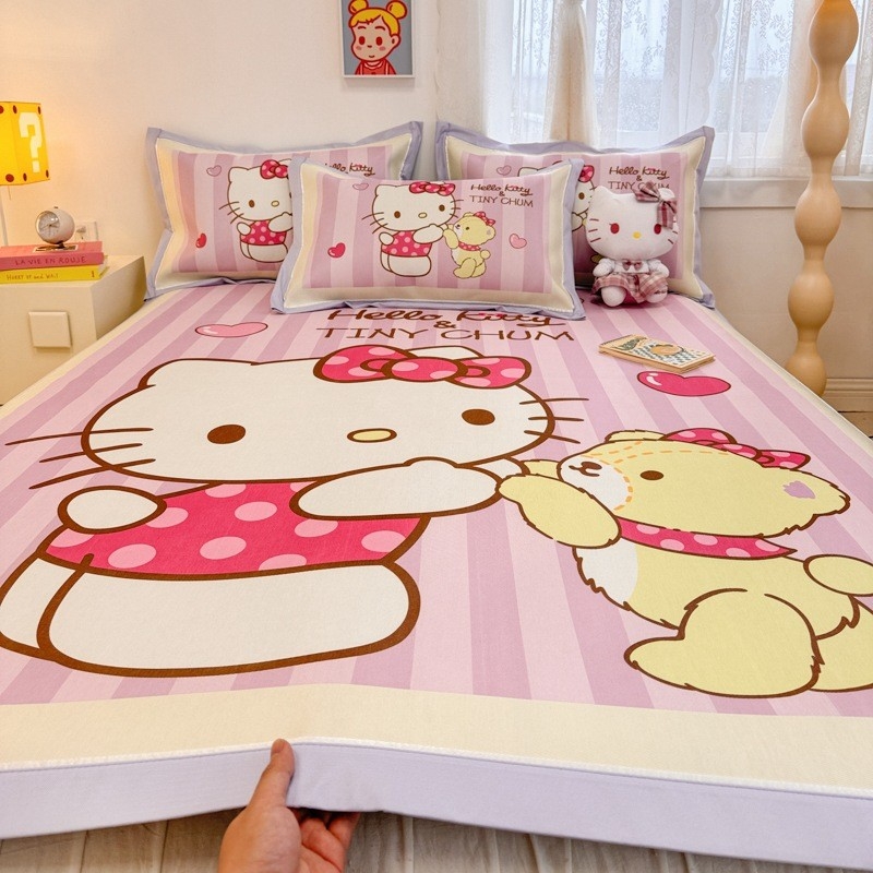 夏季凉感可机洗碳光冰丝凉席三件套床席款大版卡通空调席可折叠款