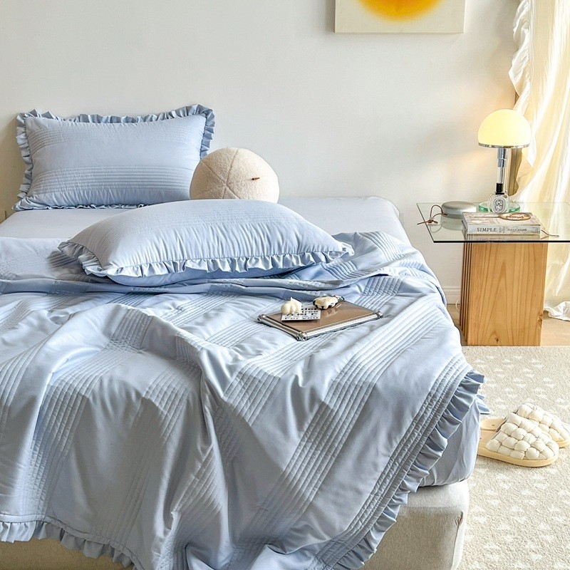 春夏款空调被水洗棉纱被子ins风被芯单人学生宿舍花边四件套