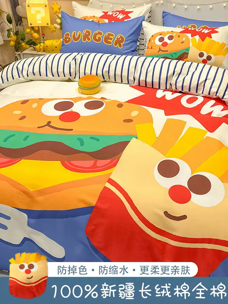 多巴胺纯棉床上四件套全棉卡通床品可爱被套宿舍床单人三件套床笠