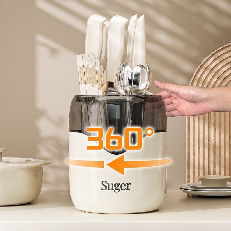 旋转刀架厨房台面置物架家用多功能筷子勺子一体式可沥水刀架塑料