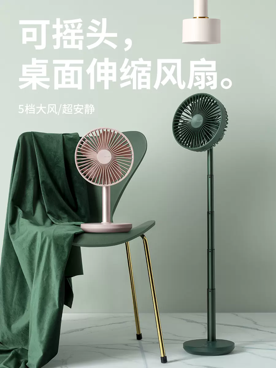 几素伸缩摇头小风扇可充电电风扇便携式家用落地小型学生宿舍床上usb