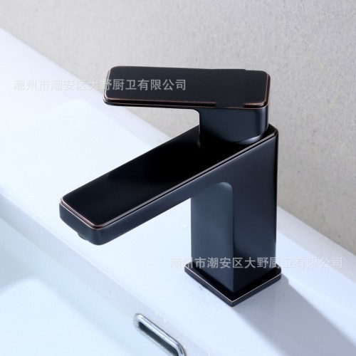 厂家直销黑色面盆龙头 浴室洗脸盆冷热水龙头 卫生间洗手盆水龙头