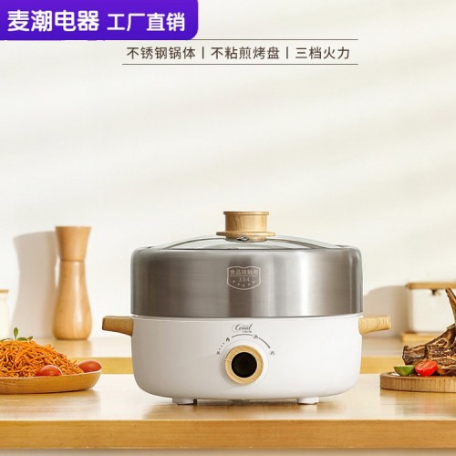 直销3L家用分体式电火锅宿舍电炒锅一体式不粘锅双胆多功能料理锅